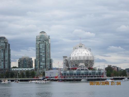 Das ist der Glasball, auch Science World genannt, in Vancouver, der häufig auch auf Postkarten zu sehen ist.